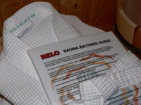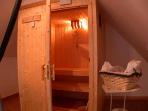 Ascend the spiral staircase to the "leisure suite" for a Finnish sauna, Gold's Gym cross-trainer machine, and invigorating shower. Check email or websites on the broadband PC. A telephone is provided for your unlimited - and free - use.